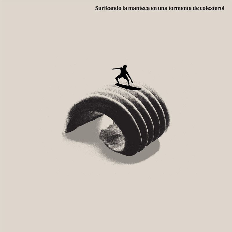 Surfeando la manteca en una tormenta de colesterol [2025] Viñeta 21 x 21 cm Digital